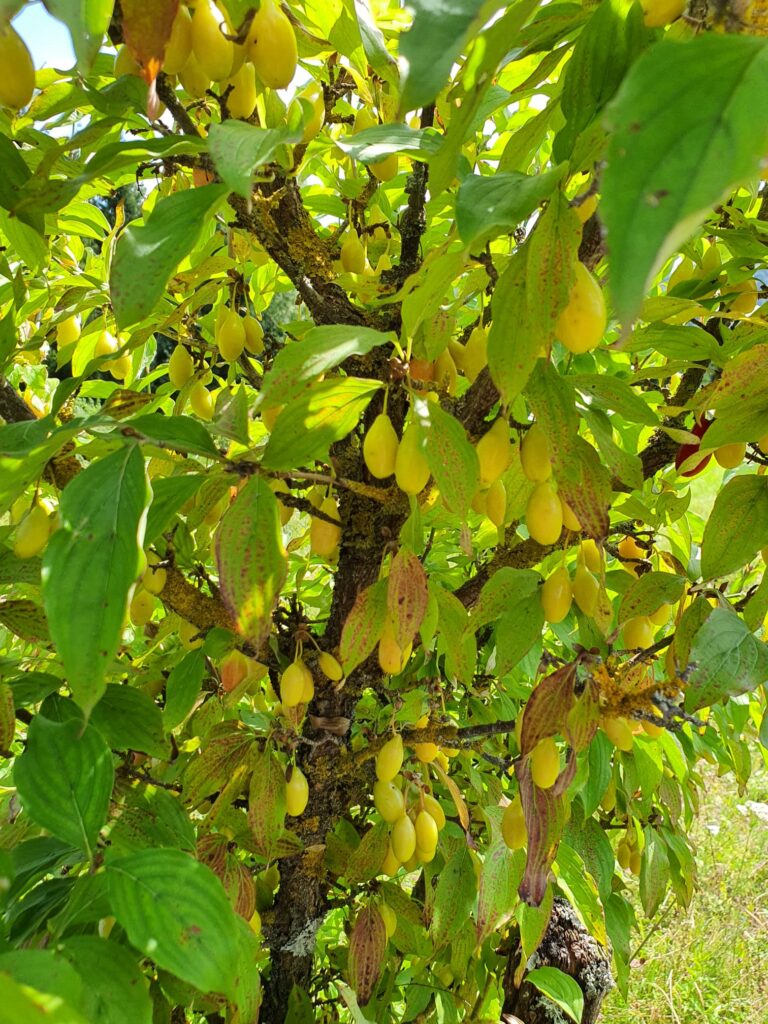 Dereń jadalny od dawien dawna jest częścią krajobrazu Podkarpacia. To roślina odporna, długowieczna i niezwykle charakterystyczna dla tego regionu. W dworkach szlacheckich a także w wielu wsiach rósł przy domach i na miedzach. Popularny był w sadach dworskich i ogrodach klasztornych. Do dziś można spotkać egzemplarze liczące ponad sto lat, które wciąż owocują, jakby chciały przypominać o dawnych czasach. Podkarpacie okazało się dla derenia idealnym miejscem — nie tylko ze względu na tradycję, ale przede wszystkim dzięki warunkom naturalnym, które nadały owocom wyjątkowy smak i aromat. Dereń dojrzewa późno, często aż nawet do października a podkarpackie jesienie są cieplejsze i bardziej słoneczne niż w centrum kraju, co pozwala owocom w pełni dojrzeć i nabrać intensywnego koloru. Owoce są bardziej aromatyczne, mniej cierpkie i słodsze. Kiszenie derenia to jedna z najstarszych metod jego przetwarzania. Proces przypomina kiszenie ogórków, ale efekt jest zupełnie inny: owoce stają się jędrne, lekko musujące, o złożonym, kwaskowo owocowym smaku. Na Podkarpaciu wykształtowała się unikalna metoda wypracowana przez pokolenia – kisi się owoce nie w pełni dojrzałe, tylko lokalnie uprawiane owoce i w efekcie uzyskujemy niepowtarzalny produkt „kiszony dereń podkarpacki„. Dereń pojawia się w polskich źródłach już w średniowieczu, ale to Podkarpacie stało się jego prawdziwą ostoją. Region ten od wieków słynął z różnorodnych odmian owoców, a dereń idealnie wpisywał się w tę tradycję. Kiszenie derenia na Podkarpaciu było czymś więcej niż tylko praktyka kulinarną, ale też rytuałem, który łączył wiele pokoleń. W wielu domach do dziś mówi się, że „kiszonki robi się nie dla smaku, ale dla spokoju w domu”. W lokalnych podaniach można znaleźć wiele wzmianek, podań czy legend gdzie mamy nawiązanie do kiszenia derenia. Takim przykładem może być opowieść o zielarce Katarzynie z Dynowa na Podkarpaciu. Zielarka miała leczyć „złamane serca” naparem z derenia. Gdy ktoś cierpiał, dawała mu owoce do kiszenia, mówiąc: „Kiszenie uczy cierpliwości, a cierpliwość leczy wszystko.” Kiszenie derenia na Podkarpaciu, było tak popularne, że wykształciła się nawet równoległa nazwa – „polskie oliwki”. Przeglądając lokalne powiedzenia z Podkarpacia dotyczące derenia kiszonego mamy kilka myśli przewodnich: historyczne podobieństw do oliwek, status „luksusowego” produktu kuchni dworskiej, produkt o właściwościach prozdrowotnych i produkt, który wnosi harmonię w codzienne życie. Kiszony dereń podkarpacki to nie tylko wyjątkowy produkt kulinarny. To symbol odporności, tradycji, lokalnej tożsamości, zgodności z naturą. To owoc, który wyrósł z klimatu, historii i ludzkiej pamięci. Dziś wraca do łask jako ambasador Podkarpacia — regionu, który potrafi łączyć przeszłość z nowoczesnością. To jest coś czego trzeba spróbować 😊